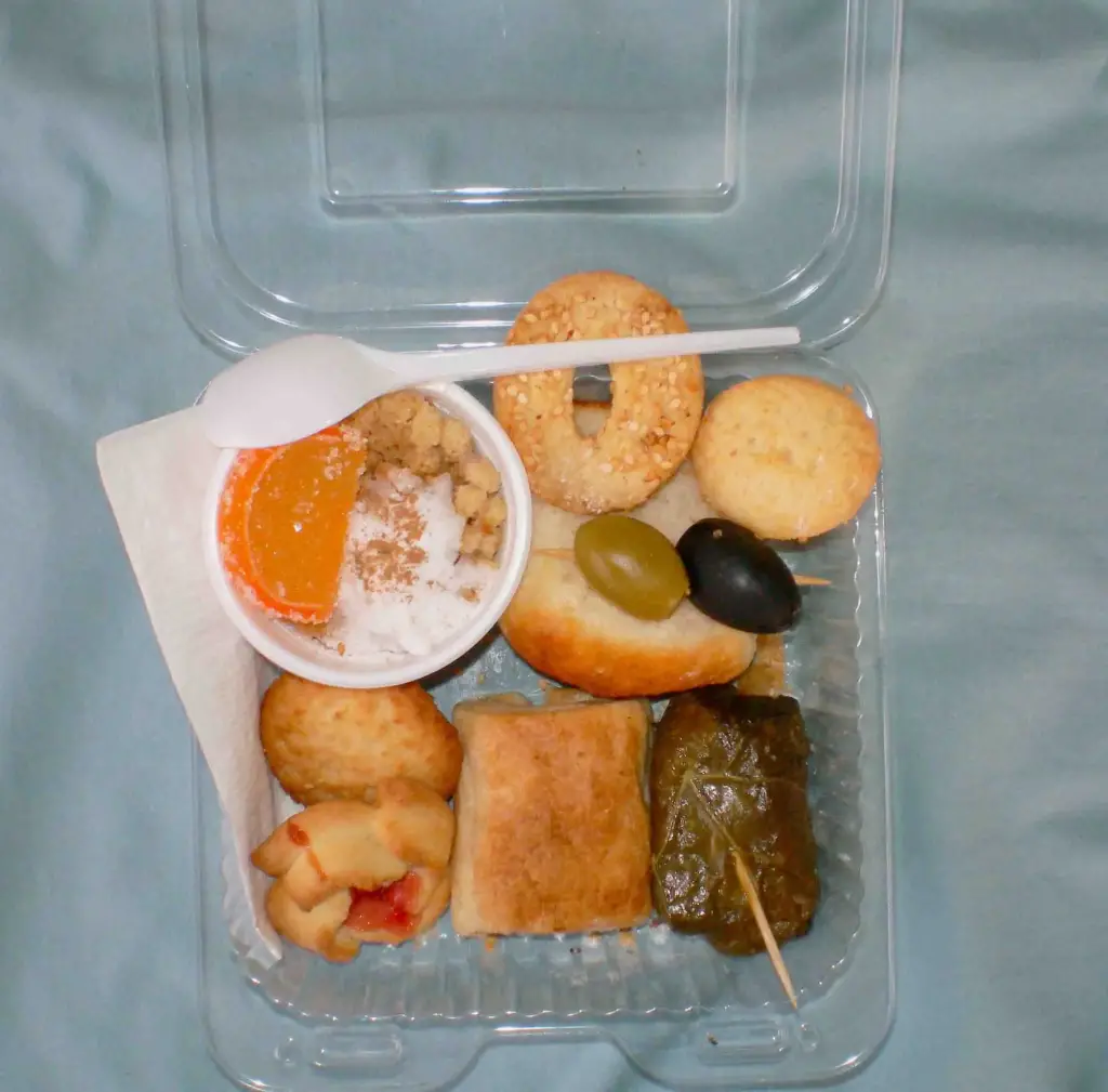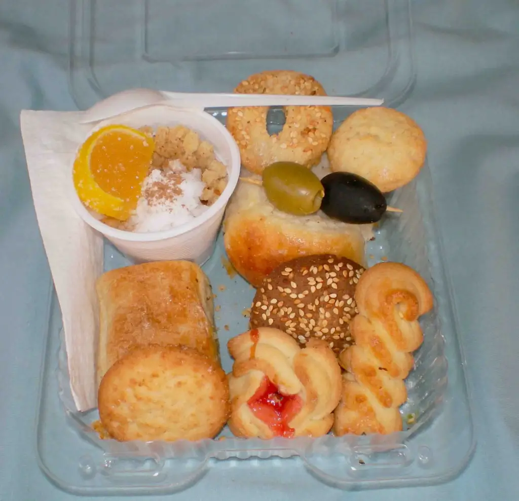 5.00 леваЖито, погача, баничка, 3 сладки, 2 соленки, лозова сърмичка, 2 маслини, лимонова резенка