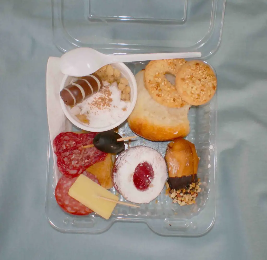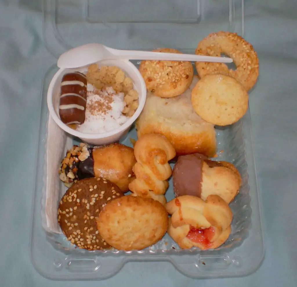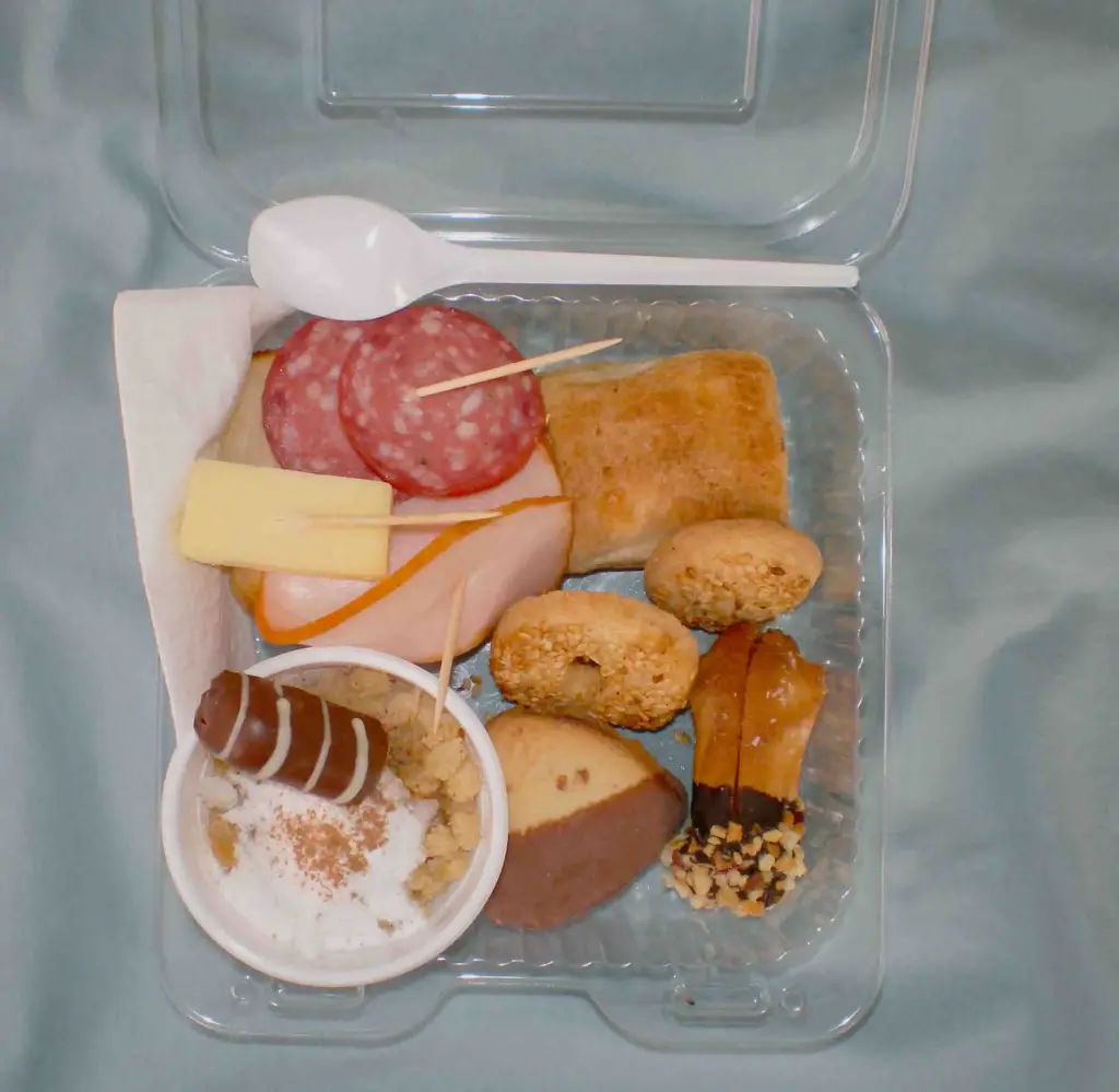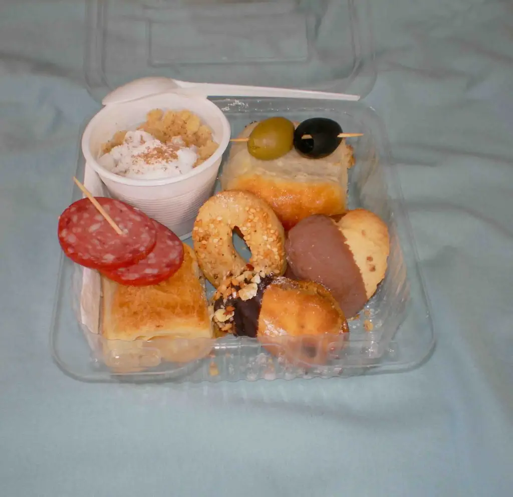 5.50 леваЖито, погача, баничка, 2 сладки, 2 соленки, 1 салам, 1 кашкавал, 2 луканки, 1 маслина, лимонова резенка
